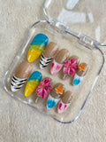 Embrace the wild spirit of summer with Safari Sundown press-on nails. These bold, easy-to-apply nails capture the fiery hues of a sunset on the savannah, perfect for making a daring statement wherever you go. Effortlessly transform your look with vibrant colors and striking patterns that last, letting your nails tell a story of adventure and fearless style.